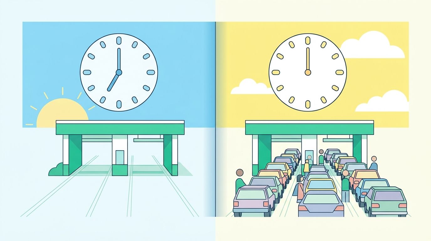 Godzina na stacji kontroli pojazdów w Warszawie to nie jest żart. W ścisłym piku (koniec miesiąca, godziny 10–14) potrafisz stracić całe popołudnie. Są jednak okna, w których stacja jest praktycznie pusta — wystarczy dobrze trafić z godziną i dniem. Ten artykuł zbiera wszystko, co o tym wiemy po setkach rozmów z diagnostami i obserwacji warszawskich stacji.